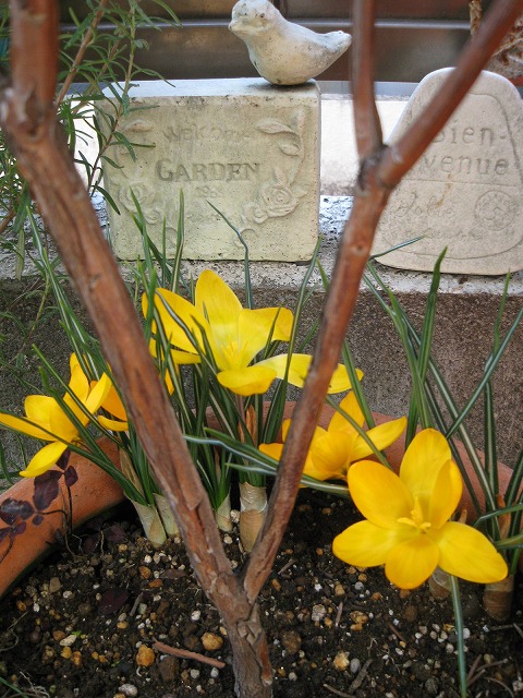 こちらは 黄花クロッカスです。先日、何日か