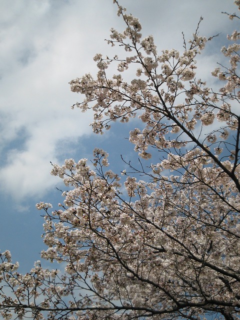 八分咲きくらいの桜が青空に映えて