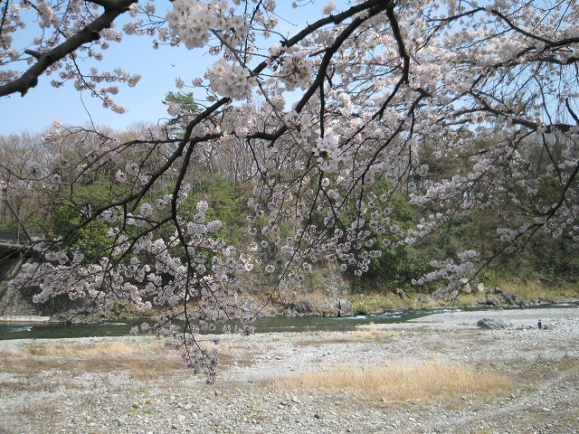 多摩川と桜です。ちょっと水量は